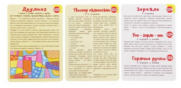 | Состав набора | 50 двусторонних карточек с разнообразными играми |