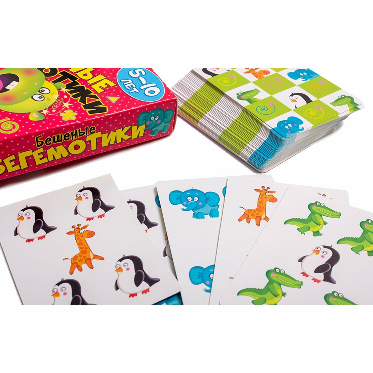 Знакомьтесь — перед вами милые бегемотики, а также пингвины, жирафы, крокодилы, слоны. Они весёлые и добрые, пока… не соберутся впятером, а как только это произойдёт, становятся БЕШЕНЫМИ!!! Поэтому требуется как можно скорее отлавливать и нейтрализовать пятерки. Шумная и динамичная игра на внимание, устный счёт и скорость реакции. В небольшой коробочке вы найдёте 100 карт (включая правила), с которыми можно провести 2 варианта игры. Основная идея — быстро считать животных на всех открытых картах, и как только животных какого-то вида набирается ровно пять — первым назвать их и хлопнуть по столу. Поскольку ситуация на столе постоянно меняется, нужно быть очень внимательным! Играйте на вечеринке, дне рождения, в дороге! Скучно не будет!