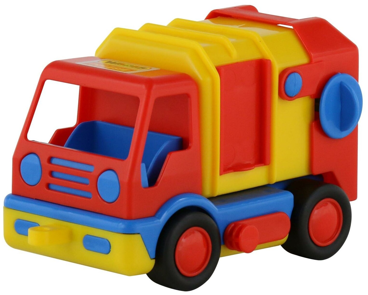 Этот яркий мусоровоз понравится малышам не только красочными элементами кузова, но и реалистичным исполнением. Ведь помимо вращающихся колёсиков, чтобы ребенок мог катать игрушку, машинка еще дополнена съемным контейнером, который позволит имитировать вывоз отходов коммунальными городскими службами.