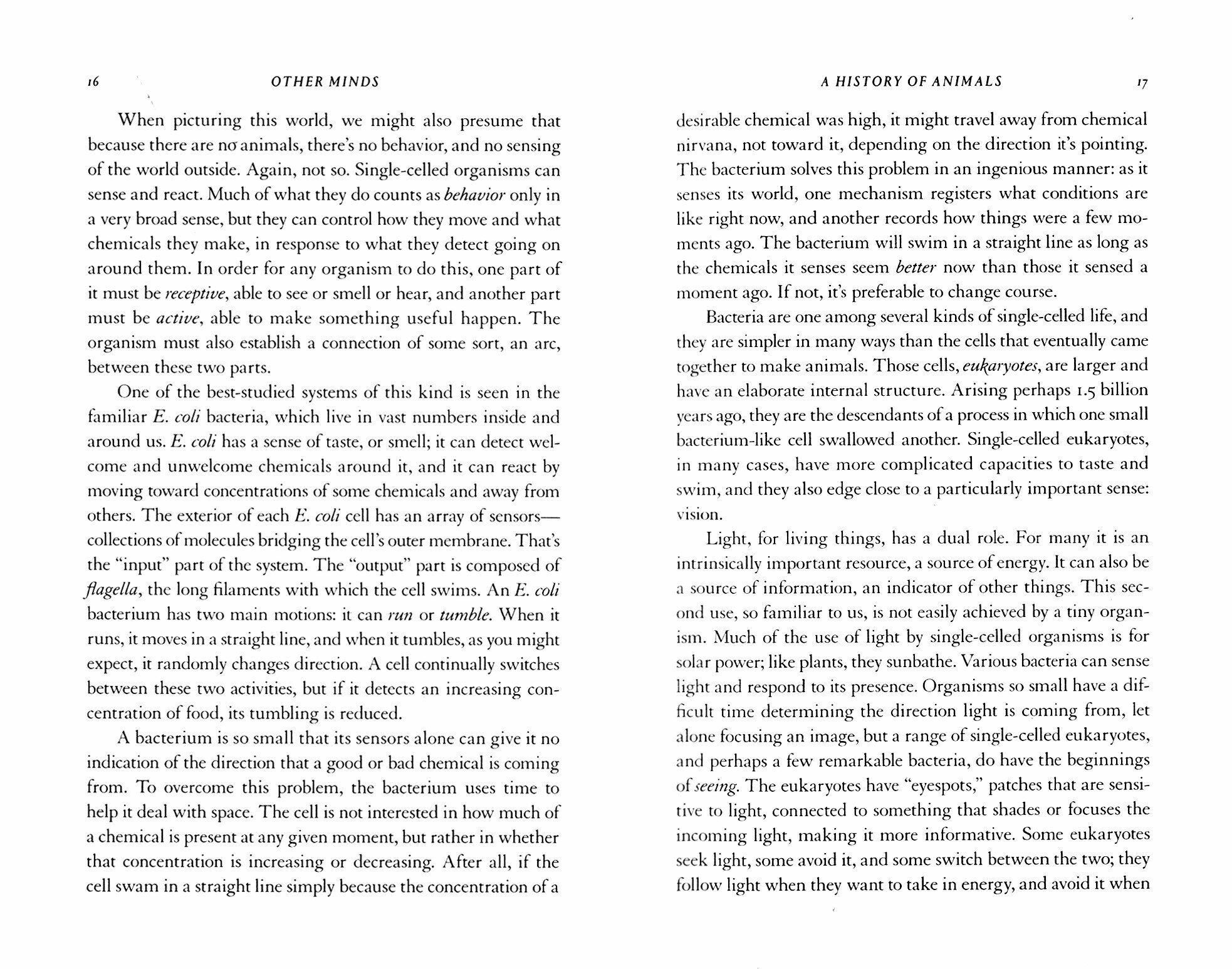 Tracking the mind's fitful development from unruly clumps of seaborne cells to the first evolved nervous systems in ancient relatives of jellyfish, he explores the incredible evolutionary journey of the cephalopods, which began as inconspicuous molluscs who would later abandon their shells to rise above the ocean floor, searching for prey and acquiring the greater intelligence needed to do so - a journey completely independent from the route that mammals and birds would later take.