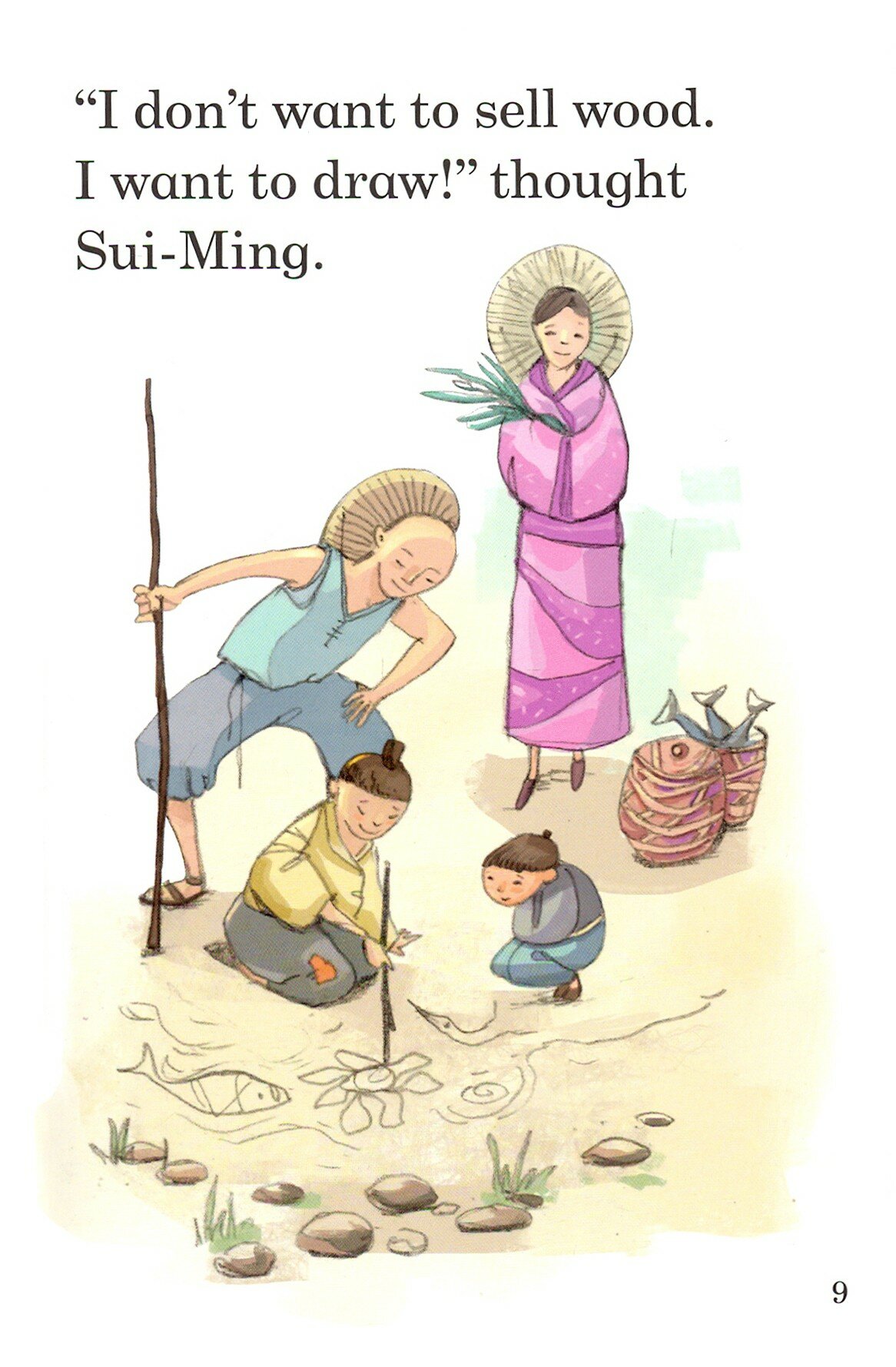 Sui-Ming wanted to draw, and one day he found a magic paintbrush. "My paintbrush must help people", said Sui-Ming.