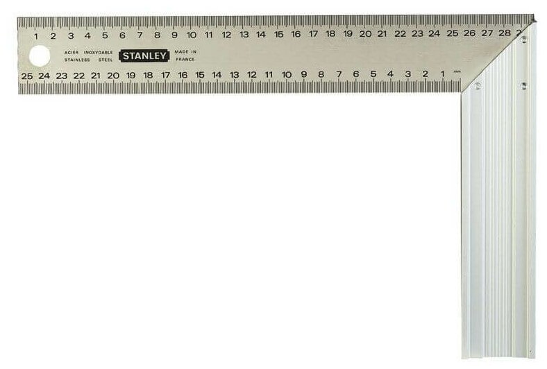 Столярный угольник Stanley является отличным помощником на работе. Показатели точные, без малейших нестыковок. Тонкий, не скользит по поверхности, вылит из стали. Вытравленная легко читаемая шкала отображается в миллиметрах с обеих сторон. Экстрадированное основание соединяется с линейкой при помощи трех заклепок. Это все сделано для обеспечения прочности и высокой точности. Длинна угольника приемлемая, подойдет для любой работы. Во время пользования заметил, что прибор действительно имеет прямой угол - 90 градусов. Также, способен откладываться на 45 градусов. Дал совет взять инструмент тесть. Досягаемый и всегда есть тут в наличии, купил сразу три штуки.