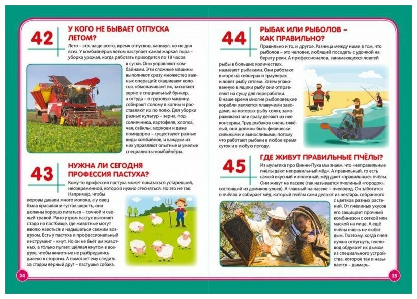 Действительно интересные. Описано все кратко, емко, завлекательно. Сразу охвачено много профессий, а то обычно несколько самых обычных и все. И не просто врач, строитель и учёный, но и более узкие специальности, что очень порадовало.