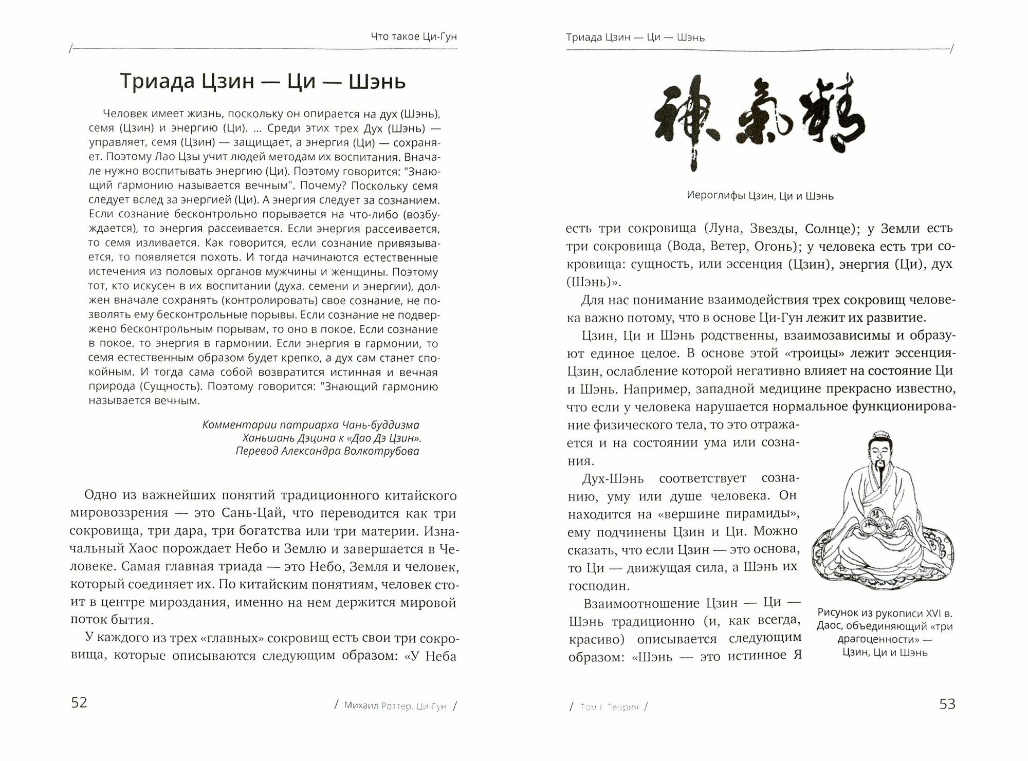 Первый раздел книги дает общее представление: что такое Ци-Гун, Цзин, Ци, Шэнь и какова их взаимосвязь. Также приводится классификация Ци-Гун и пр.