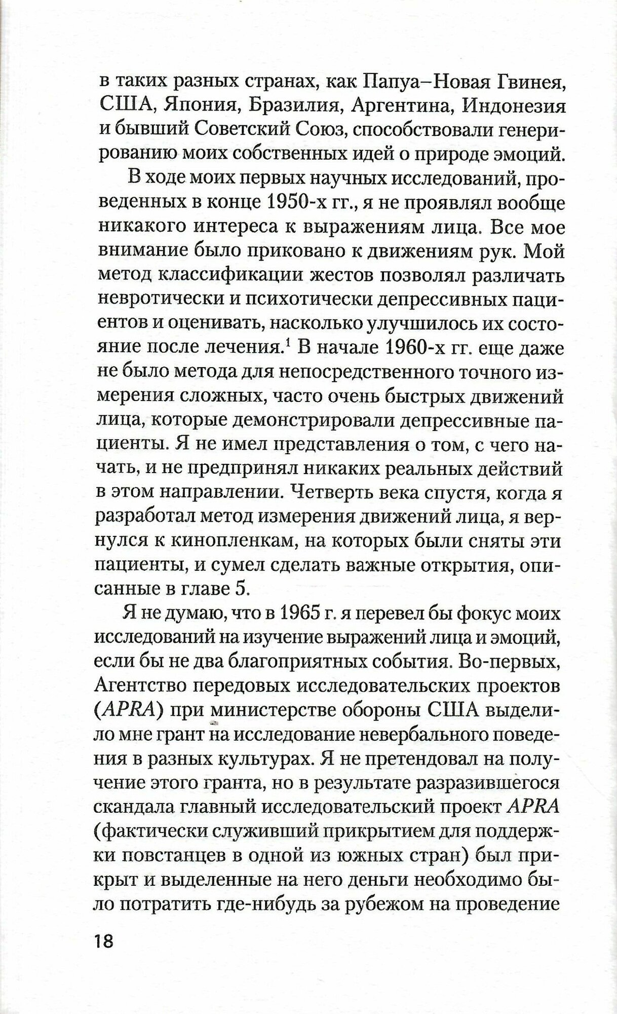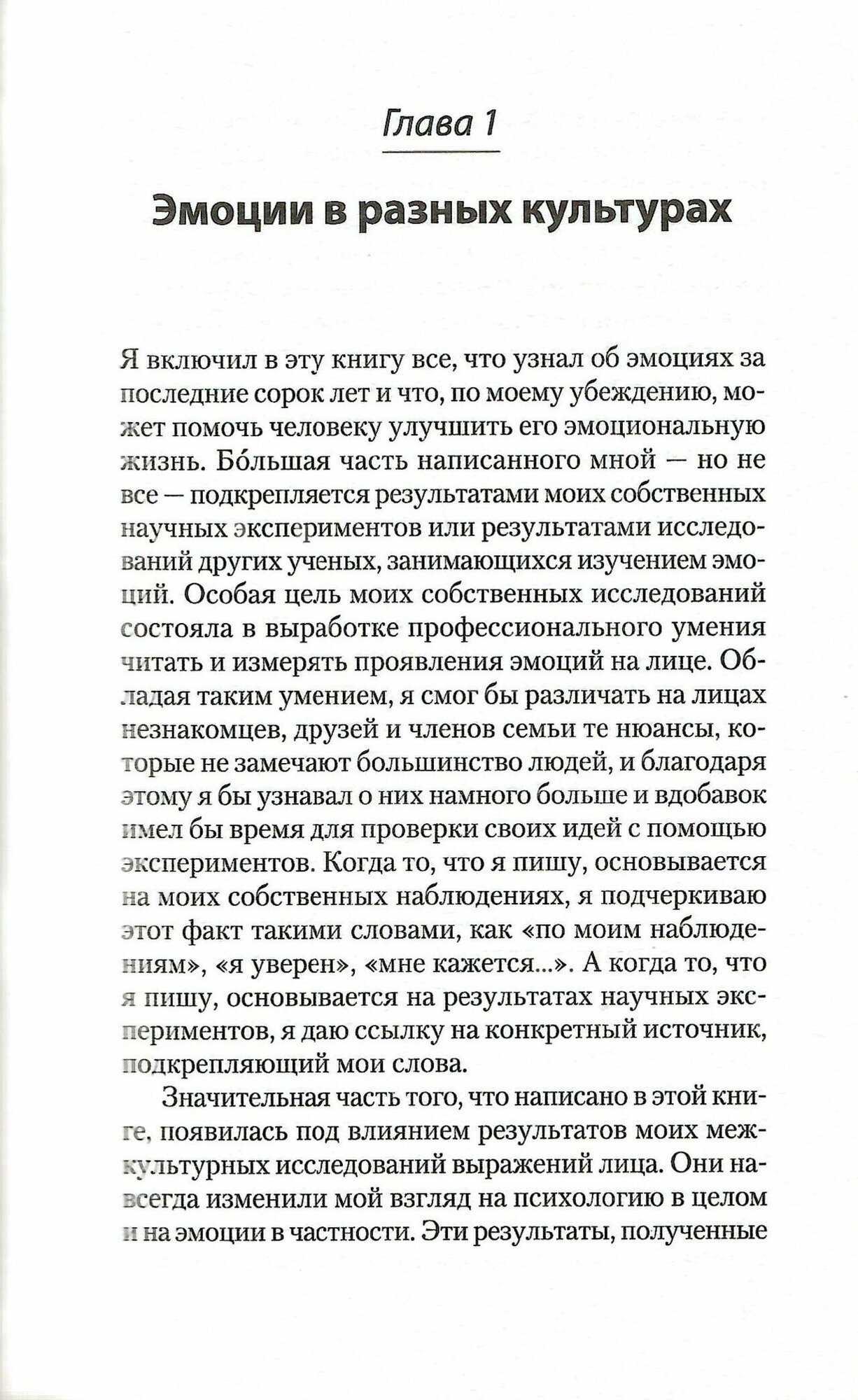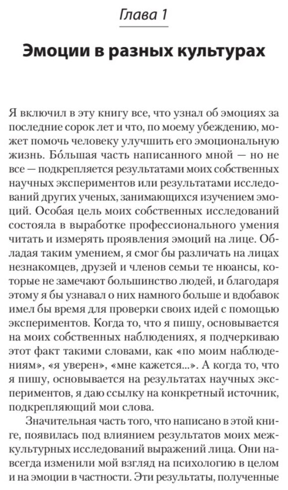Новшества в исследованиях Экмана есть, но они относятся не к описанию мимики, а во-первых, к вопросу универсальности эмоций в разных культурах, во-вторых - к вопросу распознавания лжи. Обе эти темы рассматриваются Экманом подробно в других его книгах, но и в данной книге каждой из этих тем посвящено по отдельной главе.