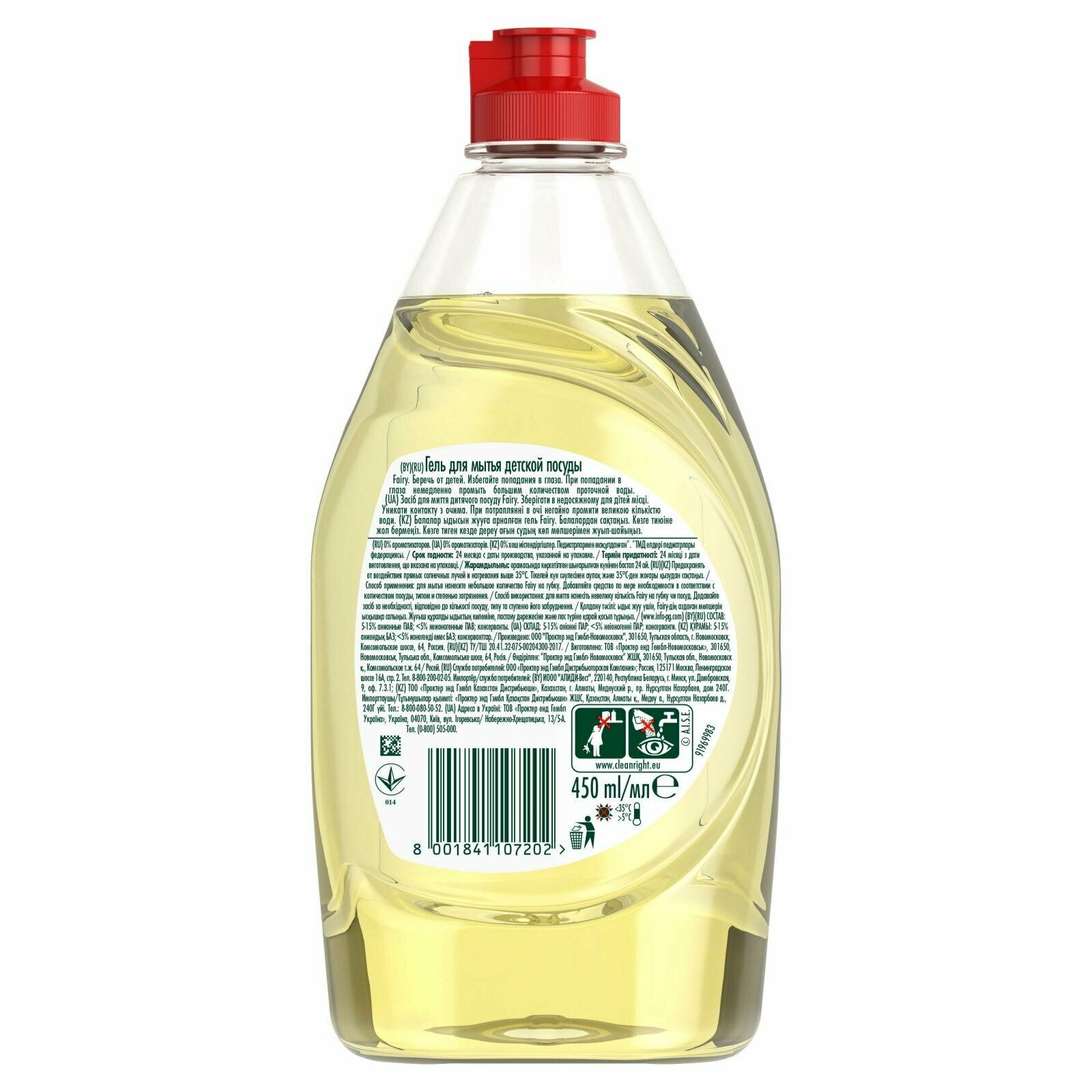 Безопасный гель Fairy разработан специально для мытья детской посуды, не содержит отдушек и легко смывается водой. Моющее средство подходит даже для пластиковой детской посуды, превосходно очищая жир и другие загрязнения с любых поверхностей. Используйте также для мытья фруктов, овощей и детских игрушек. Средство одобрено педиатрами.