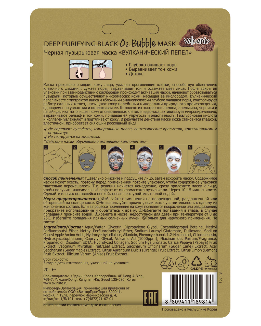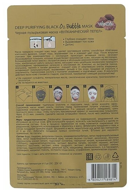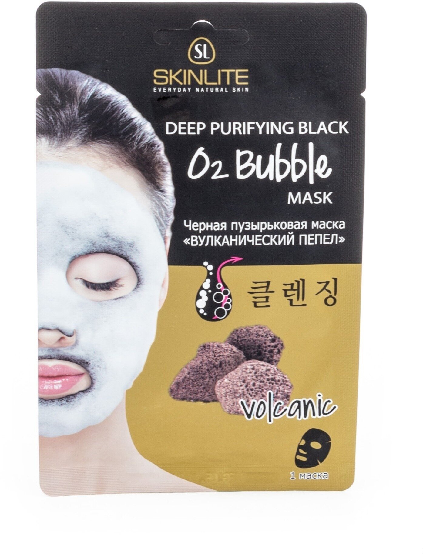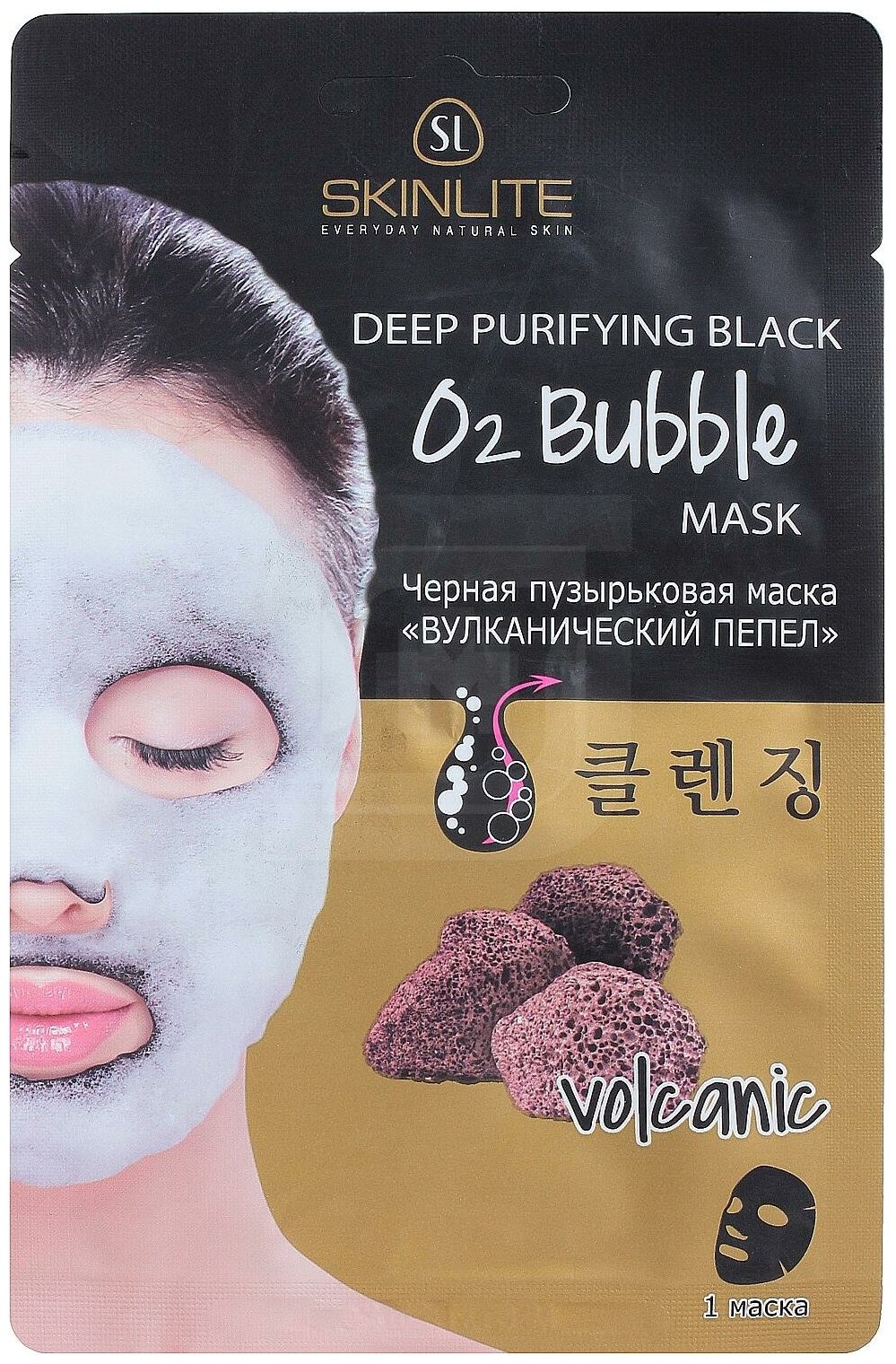 Маска для лица Skinlite Черная пузырьковая Вулканический пепел 20г Adwin Korea Corporation