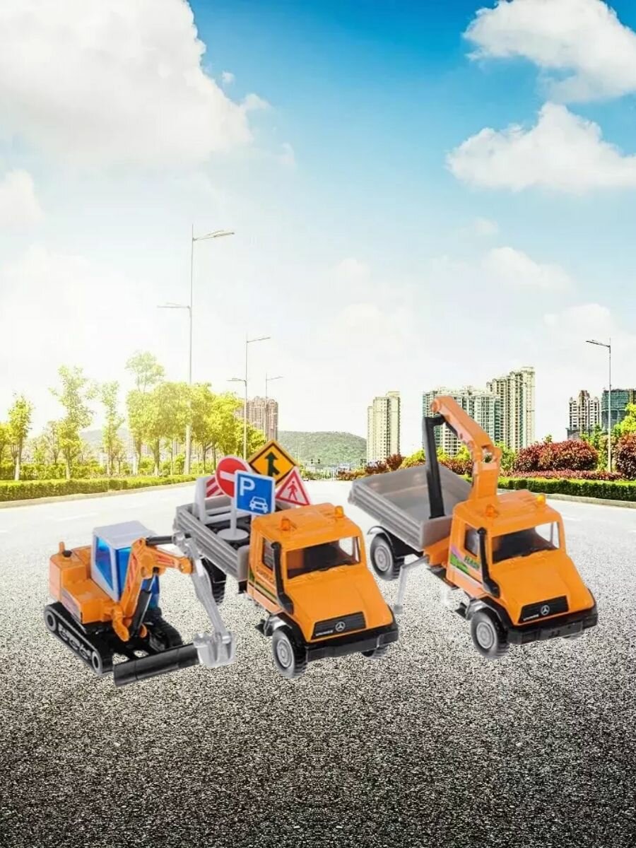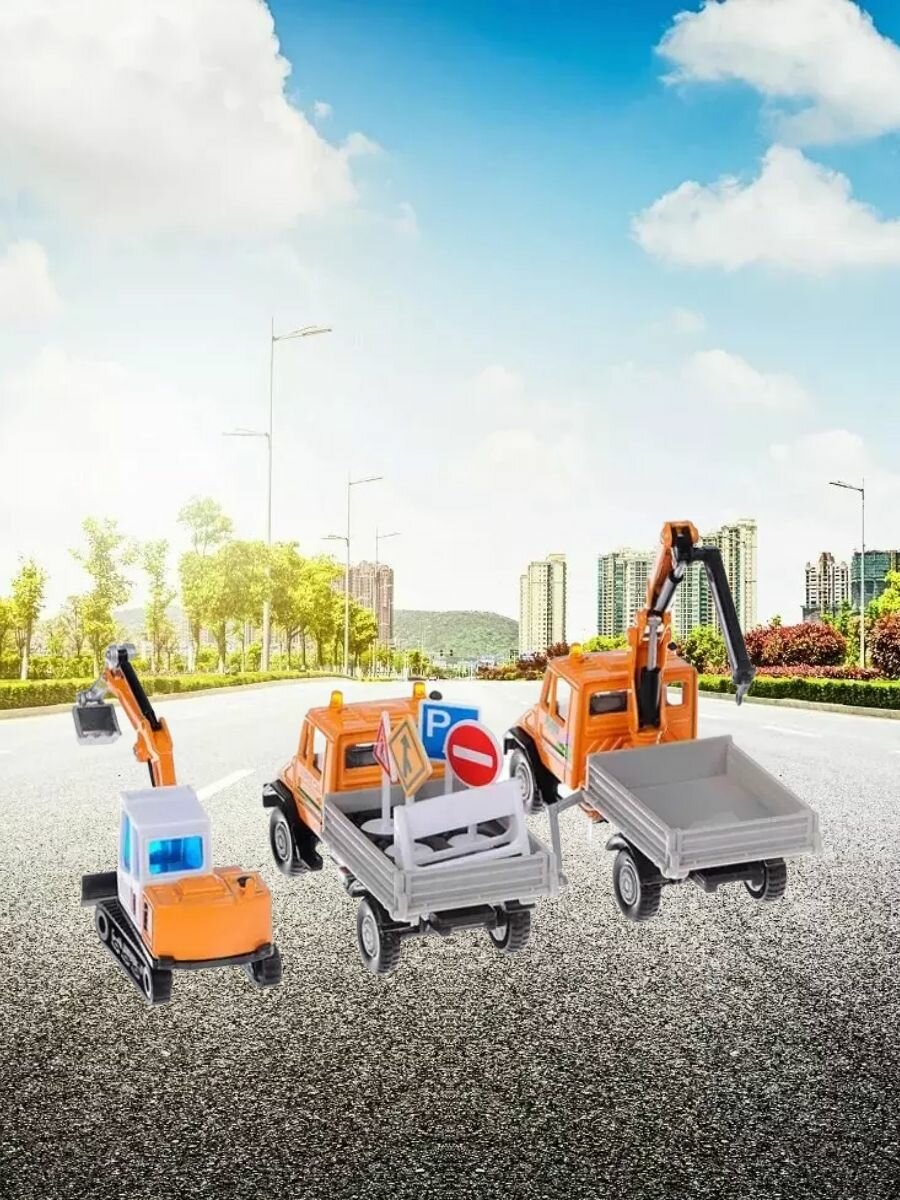В игровой набор строительной техники Urban Spirit входят три машинки и несколько дорожных знаков. При помощи моделей буксира, грузовика и экскаватора маленький мальчик сможет придумать и разыграть интересный игровой сюжет на тему строительных работ. Автомобили изготовлены из качественных и ударопрочных материалов, имеют подвижные части и вращающиеся колеса.