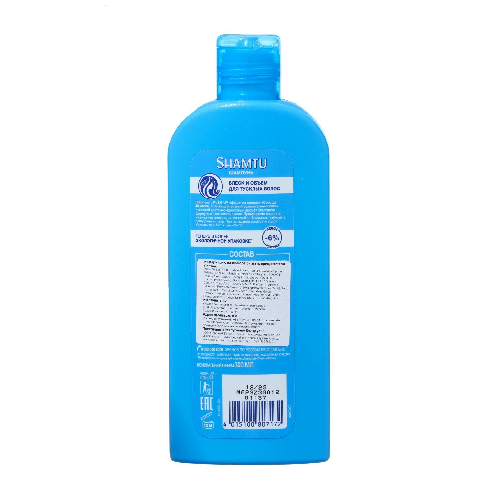 Шампунь Shamtu Блеск и объем с экстрактом японской вишни с Push-up эффектом придает волосам объем до 48 часов, а также длительный ослепительный блеск благодаря формуле с экстрактом японской вишни. Кроме того, средство подарит вашим волосам нежный цветочно-фруктовый аромат.