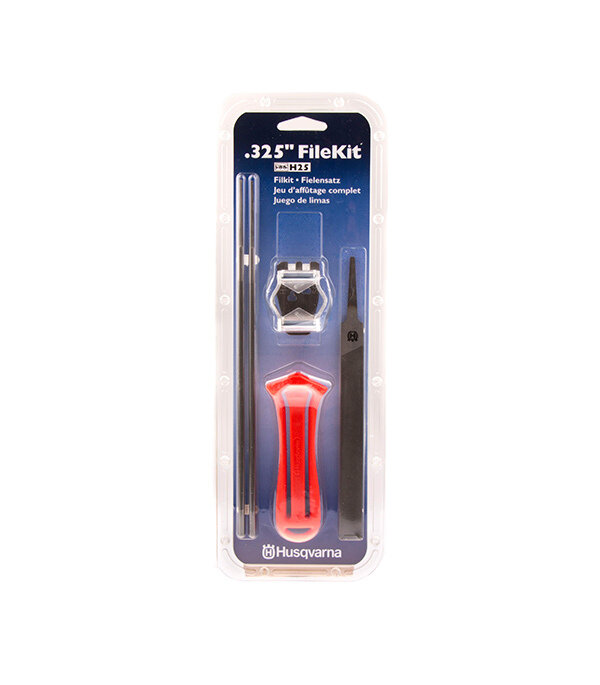 Комплект для заточки цепи Husqvarna H25 0,325" 1,5 мм 4,8 мм 5056981-26 облегчает подготовку пильной цепи к работе. Правильно заточенная цепь облегчит вашу работу и повысит безопасность. Комплект содержит рукоятку для напильника, комбинированный шаблон, ограничитель глубины реза и плоский напильник.