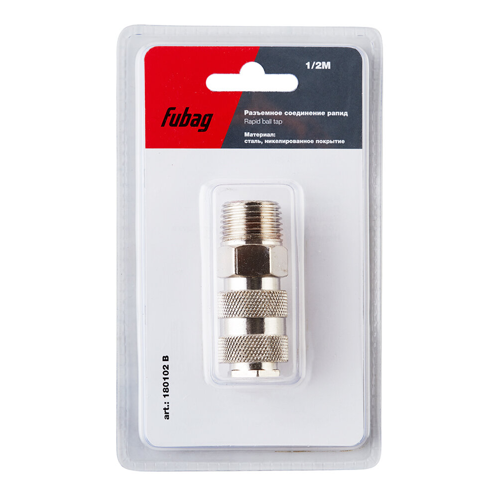 Переходник рапид — 1/2"M FUBAG используется совместно с компрессорным оборудованием для соединения выходного отверстия компрессора со шлангом, к которому прикрепляется пневмоинструмент. Созданная конструкция обладает высокой надежностью и герметичностью. Поставляется в блистере.