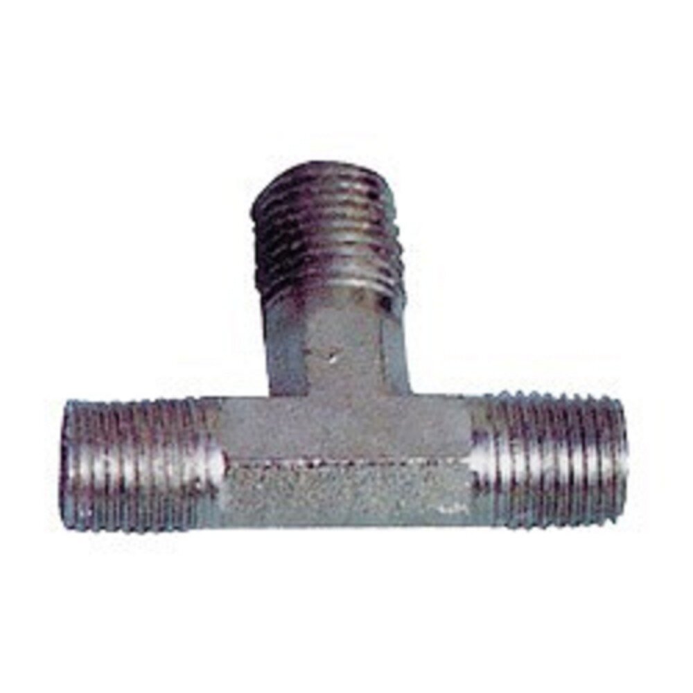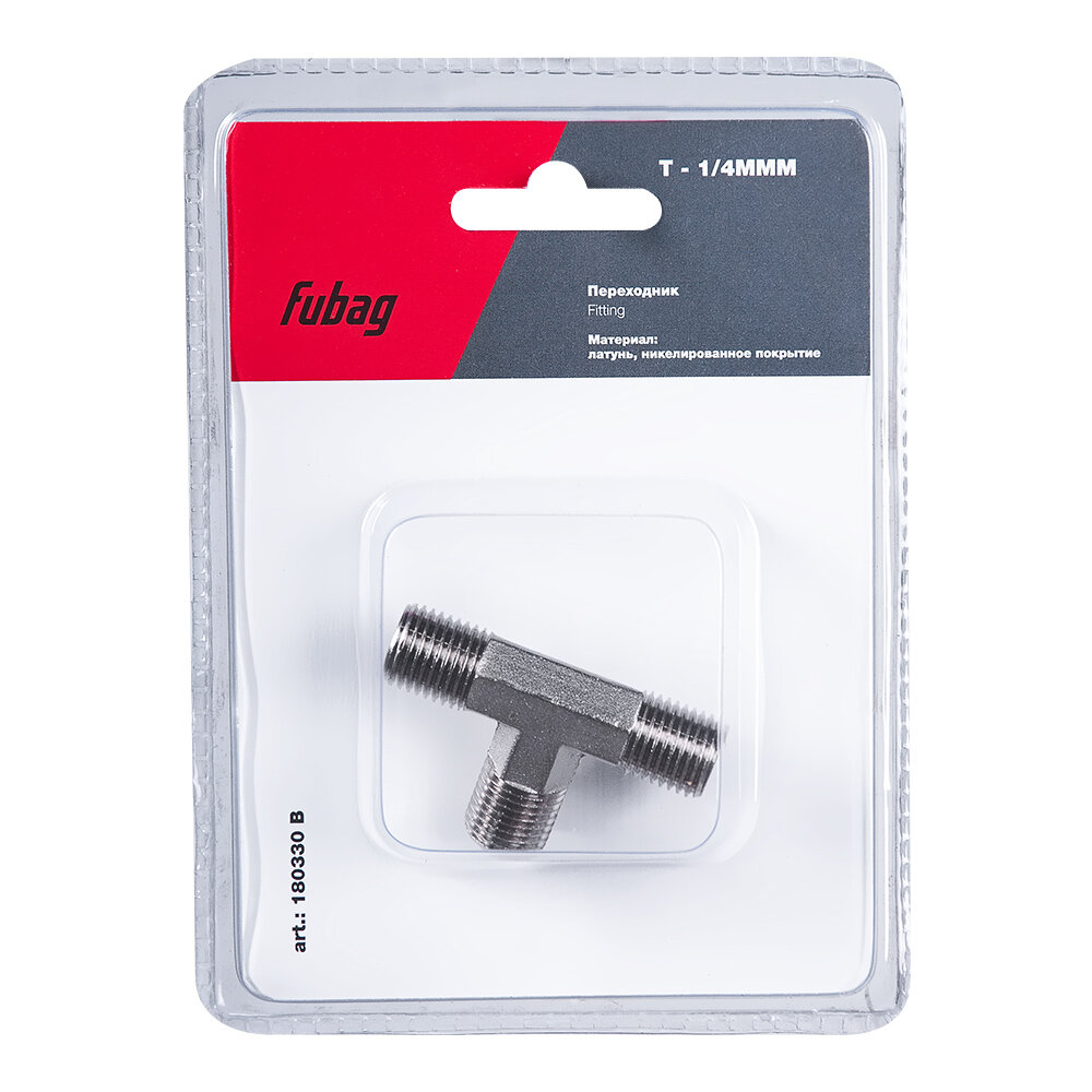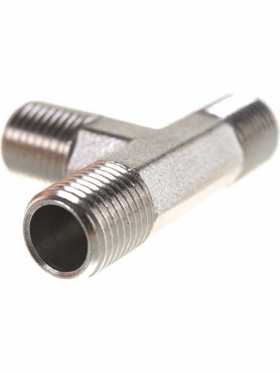 T-образный переходник (тройник) позволяет подсоединить к пневмомагистрали дополнительный участок. Крепление - резьба 1/4". Поставляется в блистере.
