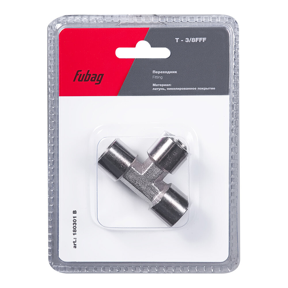 T-образный переходник (тройник) позволяет подсоединить к пневмомагистрали дополнительный участок. Крепление - резьба 3/8". Поставляется в блистере.