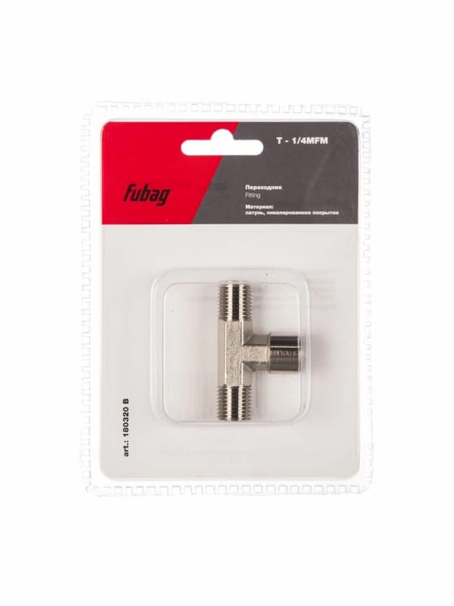 T-образный переходник (тройник) позволяет подсоединить к пневмомагистрали дополнительный участок. Крепление - резьба 1/4". Поставляется в блистере.