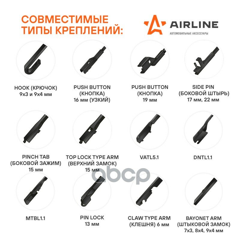 | Доп. наименование Водопад | Щетка стеклоочистителя Airline PRO AWBBK510 510 мм (20") 10 адаптеров |