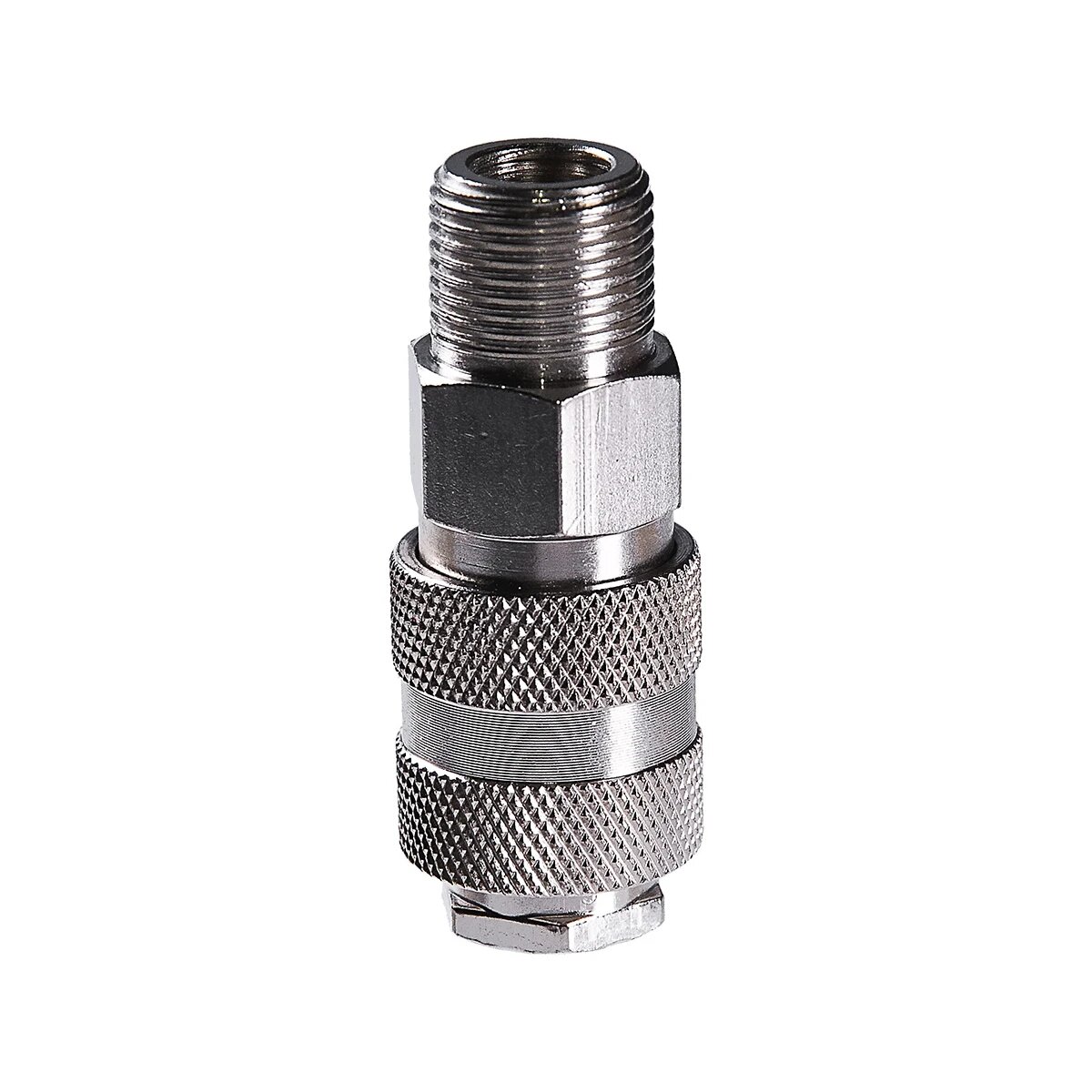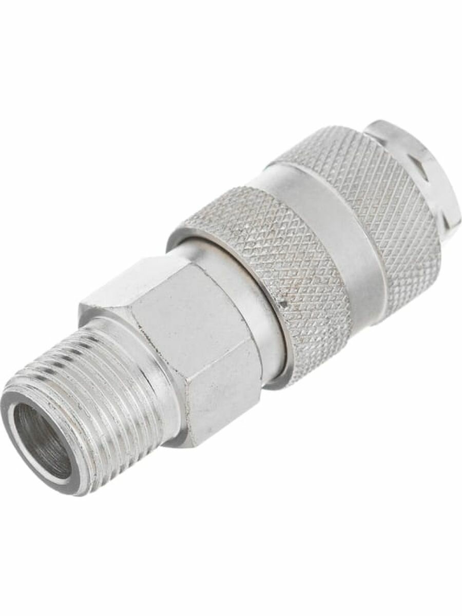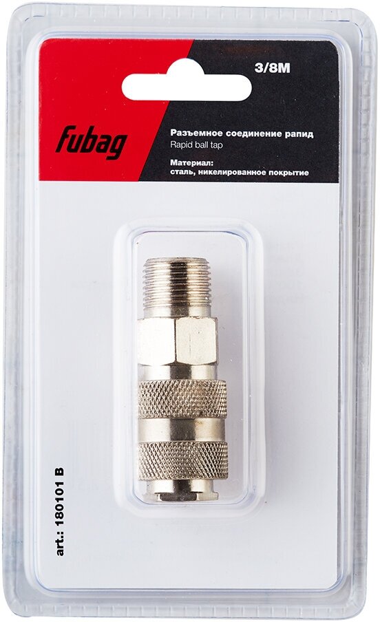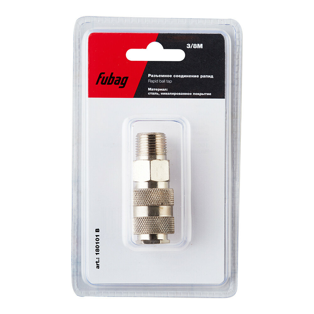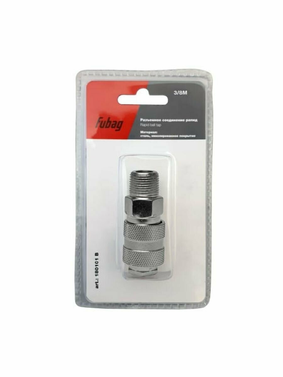 Переходник для соединения частей пневмомагистрали. Разъемы - наружная резьба 3/8" и рапид папа. Поставляется в блистере.