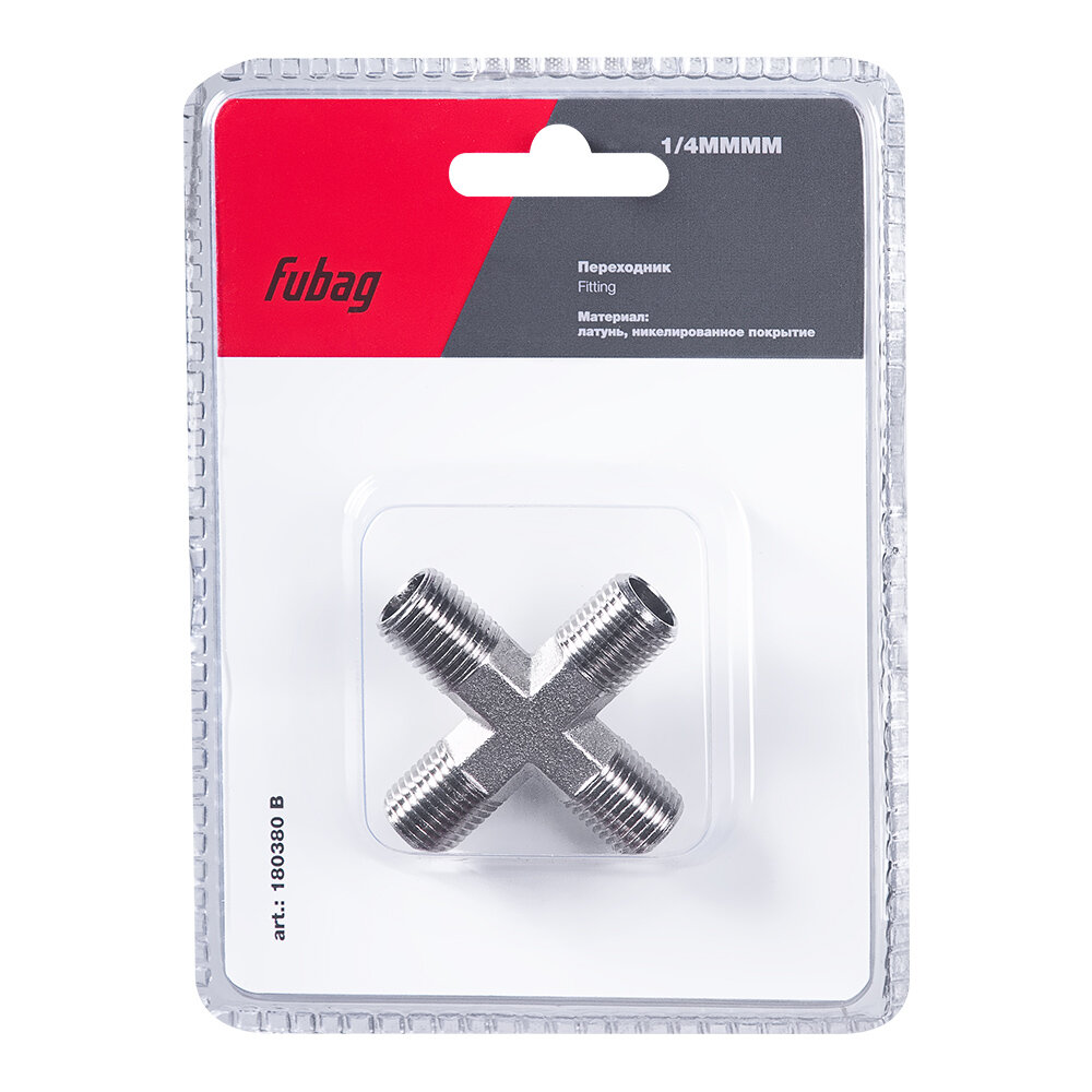 FUBAG 180380 Y-образный переходник (тройник) используется для разветвления пневмомагистрали и присоединения к ней дополнительного участка. Крепление - резьба 1/4". Поставляется в блистере.