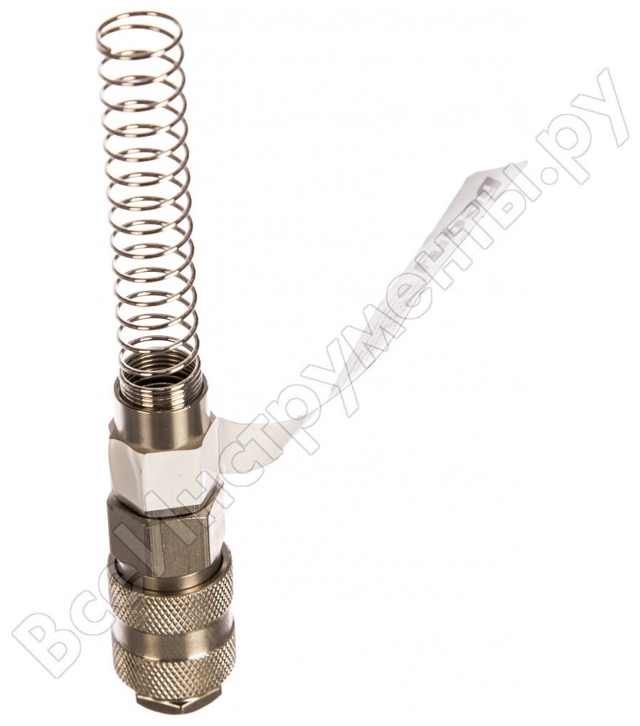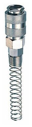 Разъемное соединение рапид-пружинка для подключения компрессора через шланг к пневмоинструменту. Пружина не позволяет шлангу деформироваться и перегибаться в месте соединения.