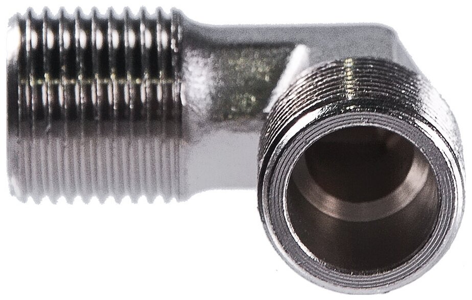 L-образный переходник (уголок) соединяет участки пневмосистемы под углом 90°. Крепление - резьба 3/8''. Поставляется в блистере.