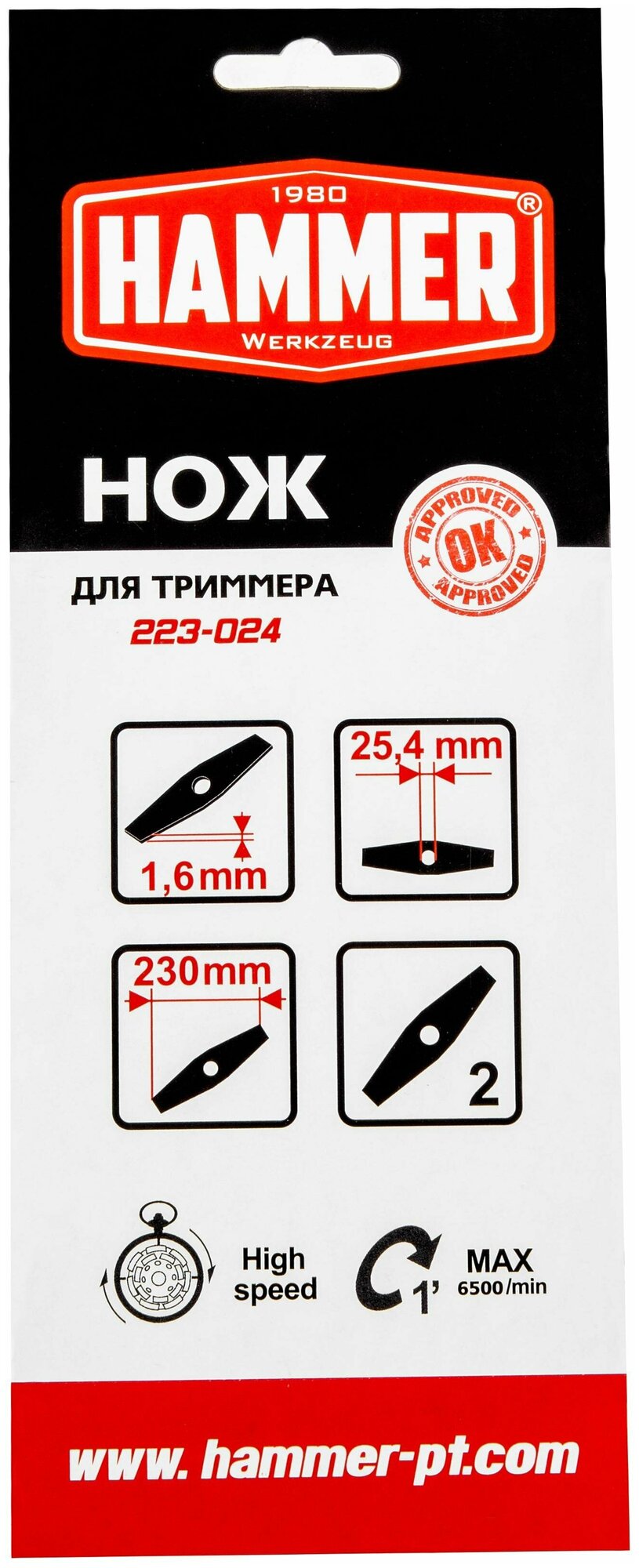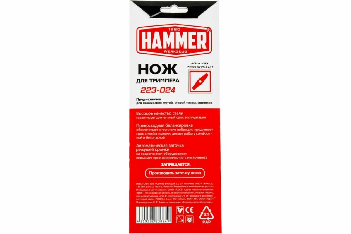 | Название на английском | Trimmer blade Hammer 223-024 2T 230x25.4x1.6mm |