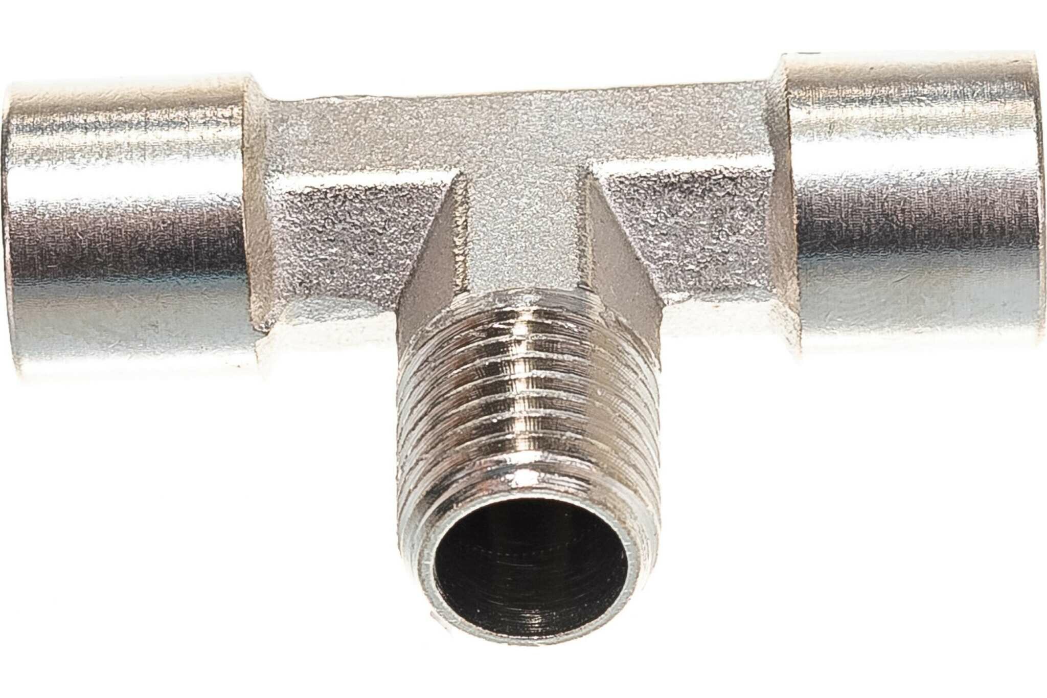Переходник T — образный FUBAG предназначен для разветвления пневмомагистрали и для подсоединения к ней дополнительного участка системы. Крепление осуществляется с помощью резьбы 1/4". Созданная конструкция обладает высокой надежностью и герметичностью.