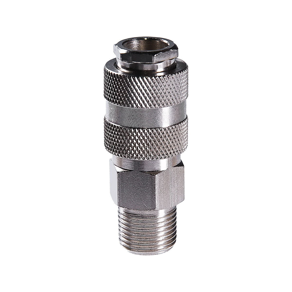 Переходник для соединения частей пневмомагистрали. Разъемы - наружная резьба 3/8" и рапид папа.