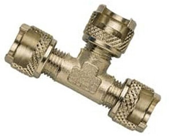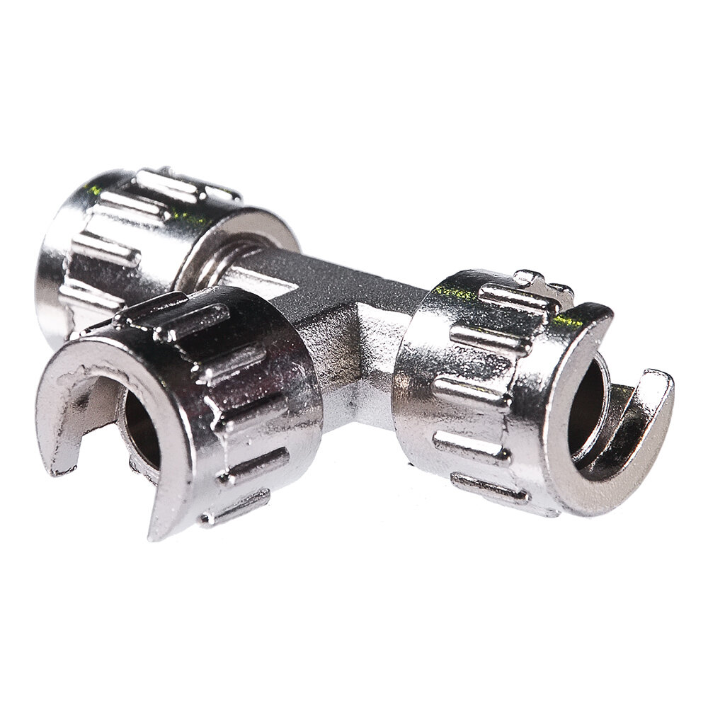 Т-образный переходник (тройник) подсоединения дополнительного участка пневмосистемы. Все соединения - байонет мама. Поставляется в блистере.