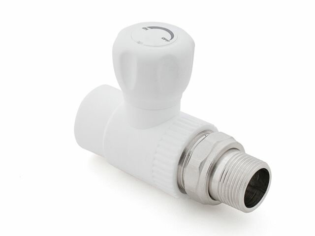 Кран шаровой для радиатора RTP белый PP-R прямой, 20 х 1/2" , 27807. Кран шаровой для радиатора "прямой" из полипропилена предназначен для перекрытия потока жидкости, транспортируемой полипропиленовыми трубами в системах холодного, горячего водоснабжения и отопления. Представляет собой комбинированное изделие выполненное из полипропиленового корпуса и металлического штуцера с наружной резьбой, соединенных накидной гайкой. Внутри корпуса находится подвижный элемент - латунный хромированный шаровой затвор (шар), по оси которого выполнено сквозное круглое отверстие для прохода среды. Шаровой затвор управляется ручкой через поворотный шток. Для полного закрытия или открытия достаточно повернуть шар с помощью ручки на 90°. Герметичность шарового затвора обеспечивают седельные уплотнительные кольца из тефлона. Герметичность поворотного штока обеспечивают уплотнительные кольца из EPDM. .Корпус крана выполнен из полипропилена PPR 80 (PPR 100). Материал шара латунь никелированная ЛС 59-2. В корпус крана интегрирована латунная никелированная закладная с наружной резьбой, на которую с помощью латунной накидной гайки крепится латунный штуцер с уплотнительным кольцом из EPDM для подключения к отопительному прибору с наружной резьбой, соединенных накидной гайкой. Поворотная ручка "барашек" крепится с помощью винта к латунному штоку. Номинальное давление PN25. Максимальная рабочая температура 95?С. Цвет серый или белый. Монтаж ПП шарового крана выполняется методом термической диффузионной раструбной сваркой. Форма поставки - в коробках из гофракартона, промежуточная упаковка полиэтиленовые пакеты с кратным числом фитингов.