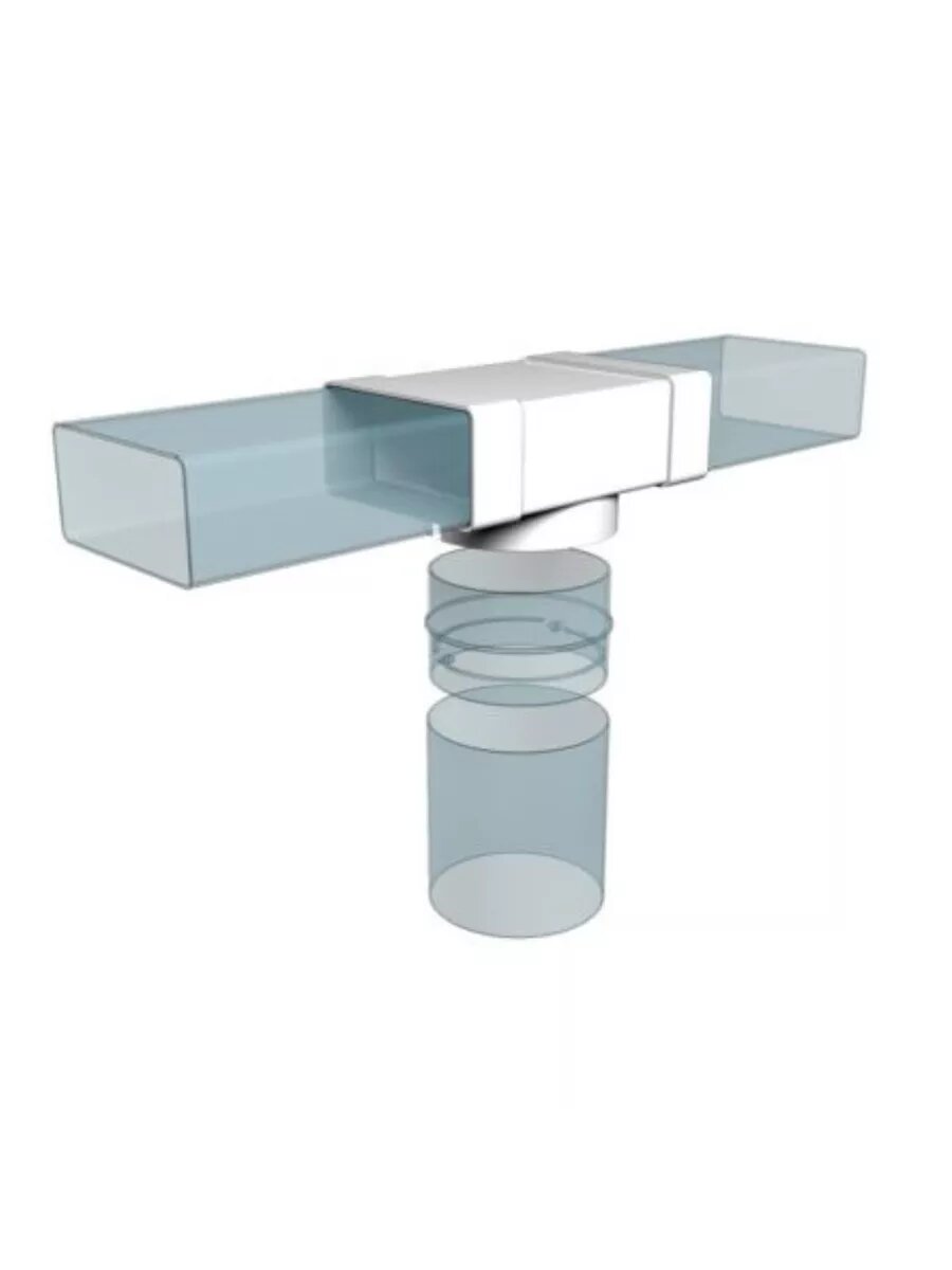 Соединитель плоского воздуховода с выходом на фланцевый воздухораспределитель.