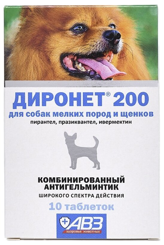 Антигельминтик для собак и щенков АВЗ Диронет для мелких пород 200мг/таб