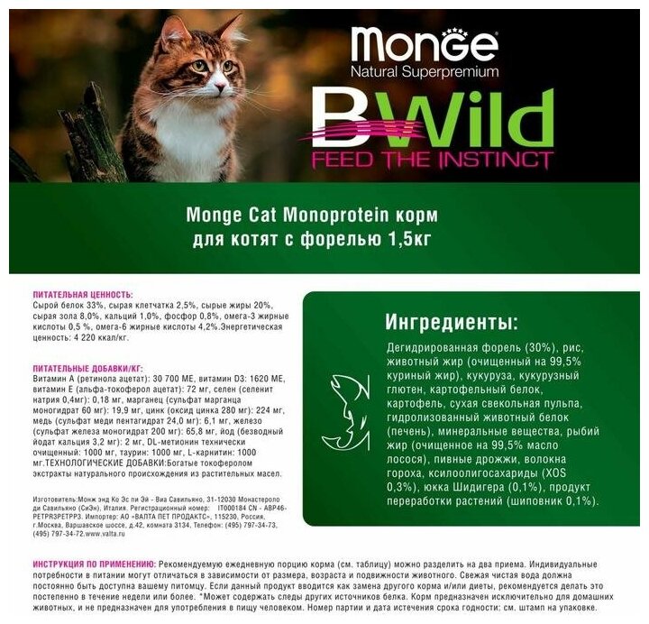 Monge (Монж/Монже) Cat Monoprotein (Монопротеин) корм для котят с форелью 400г