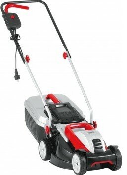 Относительно недорогая газонокосилка с питанием от электросети. За один проход может обработать участок шириной в 32 см, система регулировки высоты среза ручная, то есть пользователю придётся самостоятельно менять положения каждого колеса (реализованы только 3 положения в пределах от 20 до 60 см). В основе устройства находится двигатель мощностью 1000 Вт, модель может послужить хорошим решением для газона площадью около 250 кв.м.