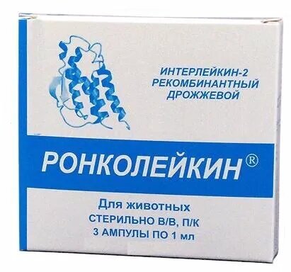 Лекарственный препарат для кошек и собак БИОТЕХ Ронколейкин 100 000 МЕ ампула 1мл (размер: 0.016)