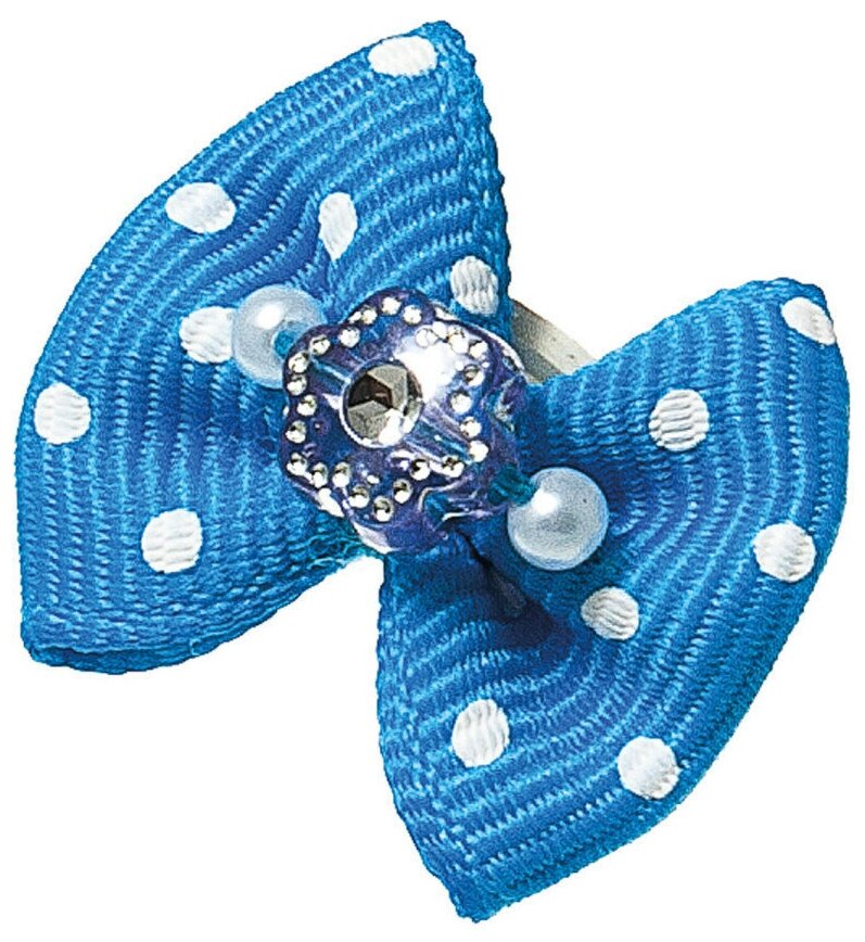 Бантик V.I.PET (пара) голубой в белый горошек (цветок+жемчуг)
