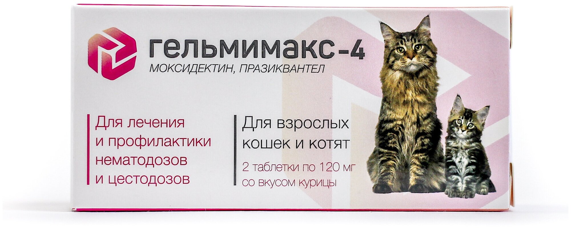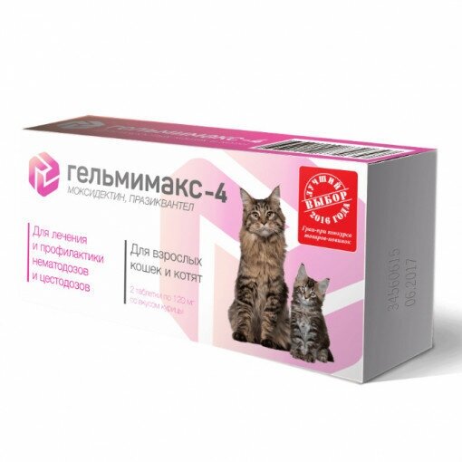 Модель: Гельмимакс-4 для взрослых кошек и котят 2 таб. по 120мг