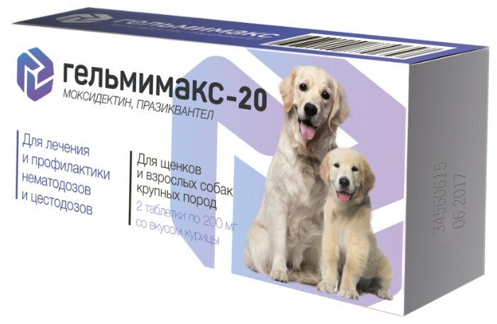 | Размер | Гельмимакс-20 для щенков и собак крупных пород 2 таб. по 200мг |