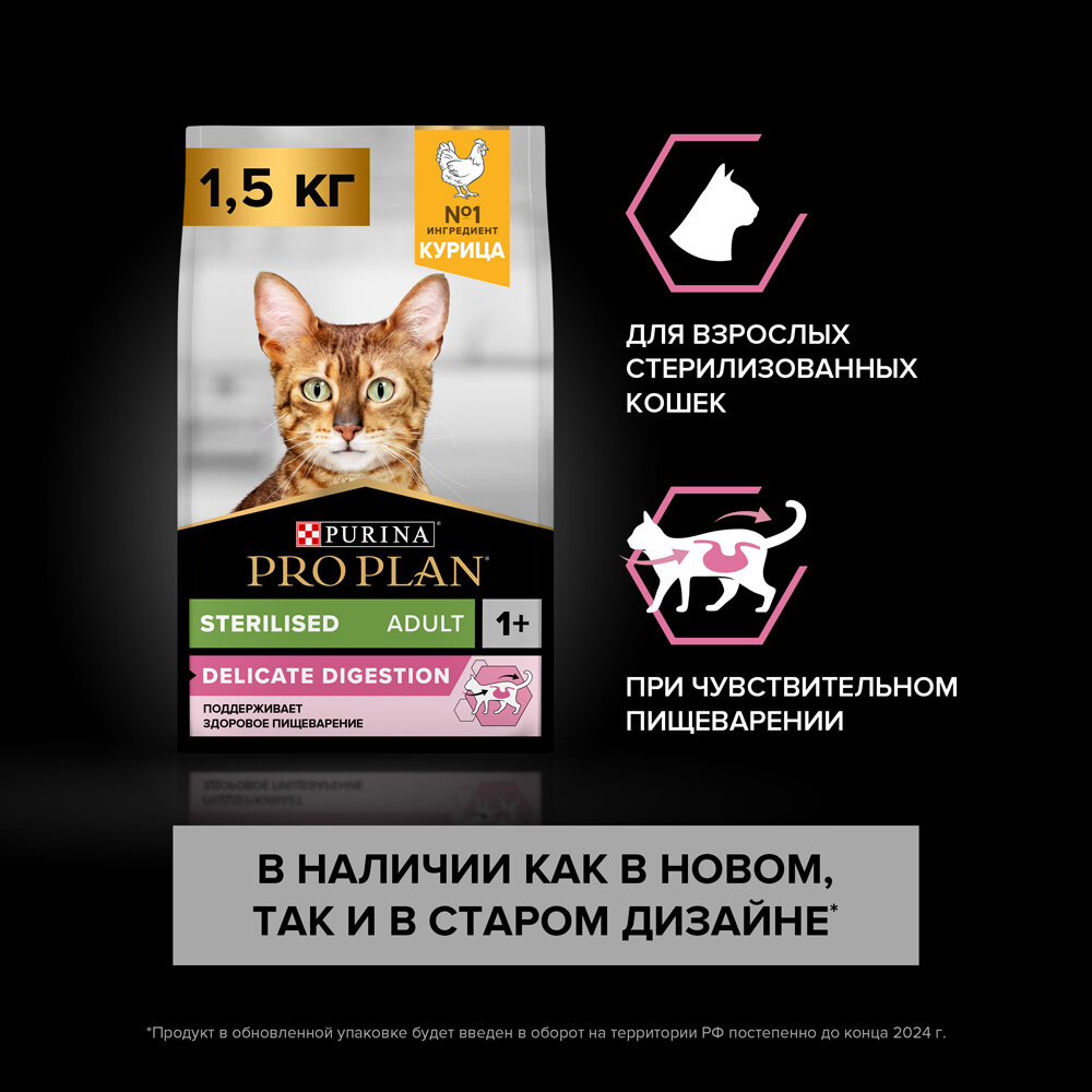 Корм для кошек Pro Plan для стерилизованных с чувствительным пищеварением, курица сух. 1,5кг (размер: Для всех пород)