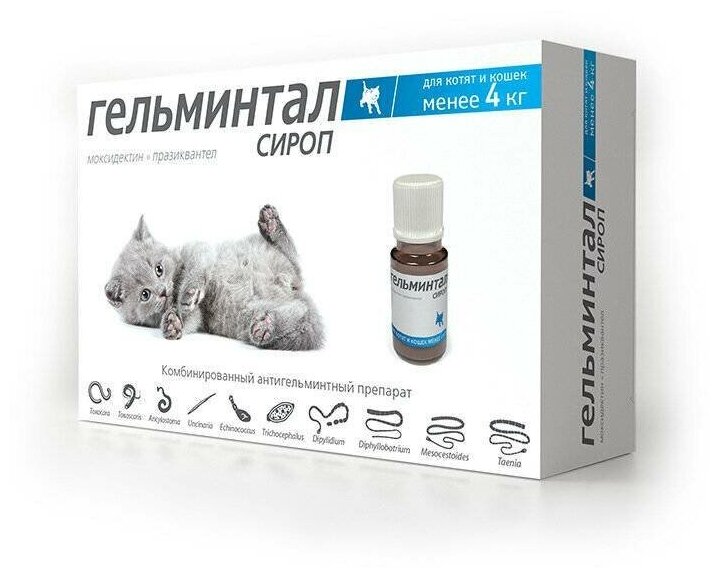 Антигельминтик ГЕЛЬМИНТАЛ для котят и кошек до 4кг, сироп 5мл