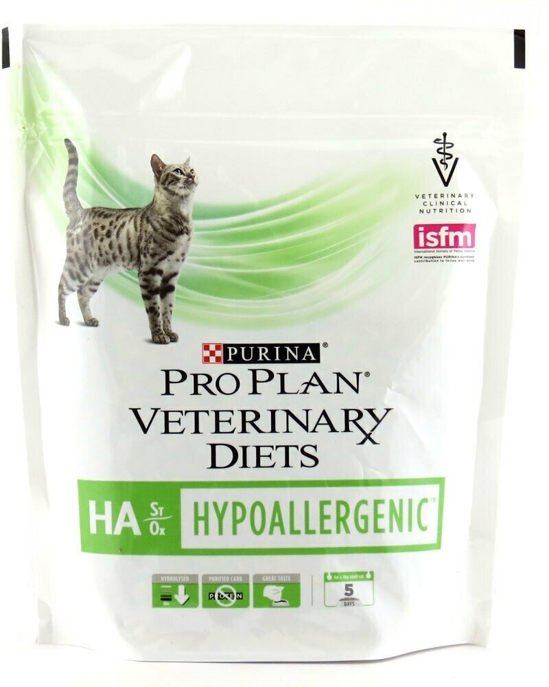 Purina Pro Plan Veterinary diets HA Корм сухой полнорационный диетический для котят и взрослых кошек при аллергических реакциях. Корм рекомендуется для снижения непереносимости ингредиентов и питательных веществ, на основе специально отобранных источников белка и углеводов