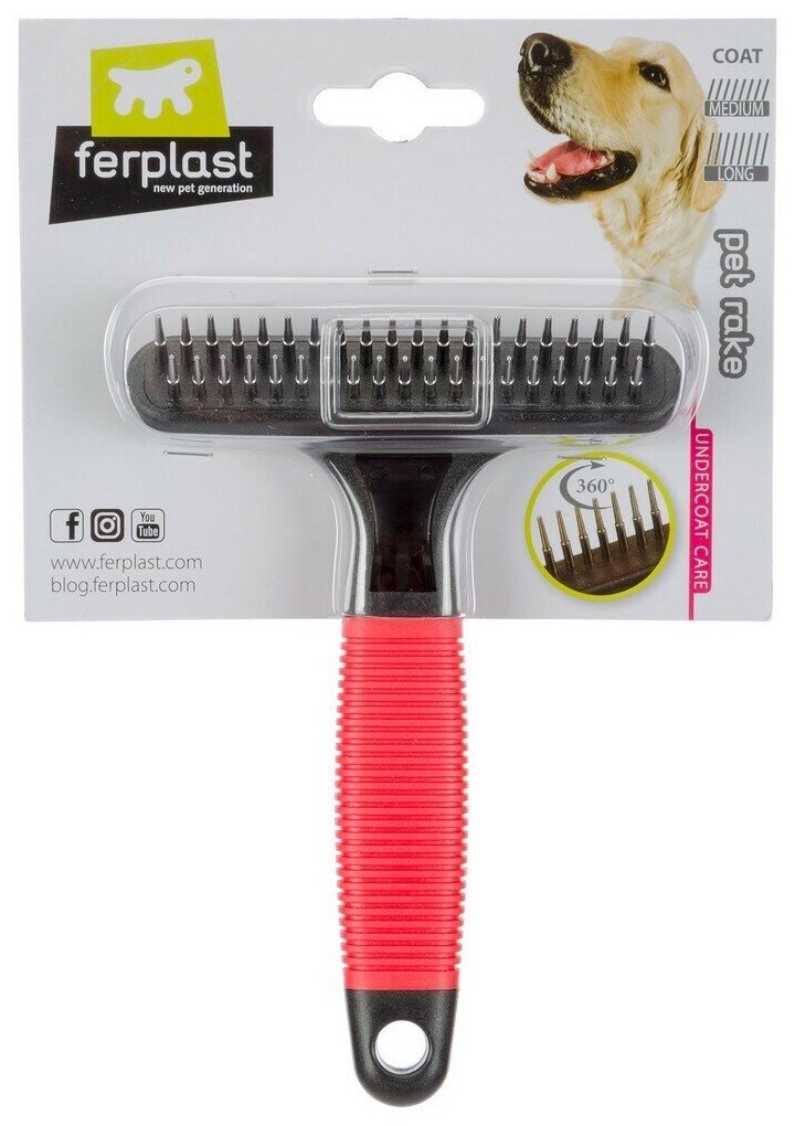 Ferplast GRO 5874 — расческа с вращающимися зубьями для собак и кошек с пластиковой ручкой идеально подходит для животных со средней и длинной шерстью.