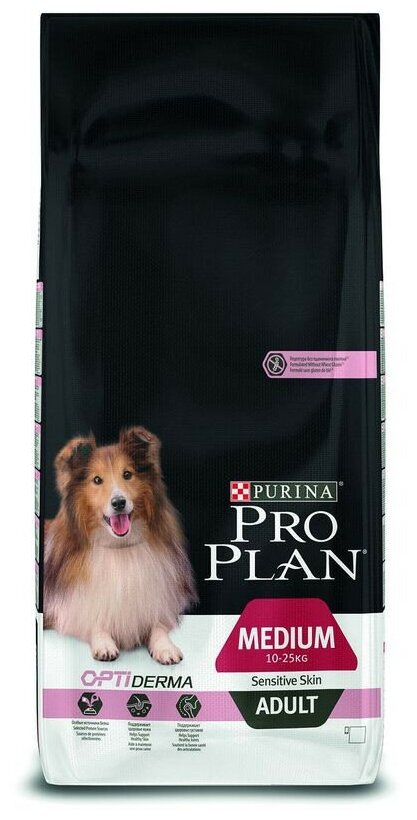 Корм сухой для собак средних пород собак PRO PLAN® Sensitive skin — это полюбившийся PRO PLAN® Opti Derma с новым названием, но с прежним составом и качеством.