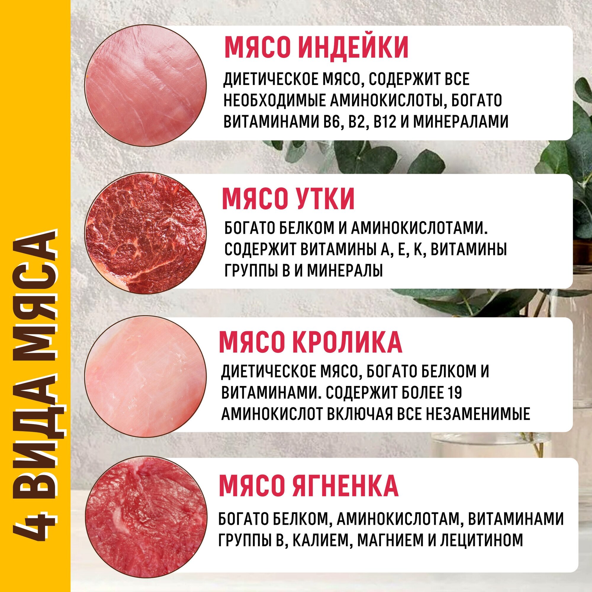 | Ингредиенты (вкус) | Индейка,Кролик,Ягненок,Утка |