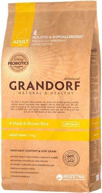 Корм для собак GRANDORF для мелких пород, Четыре вида мяса с бурым рисом сух. 3кг