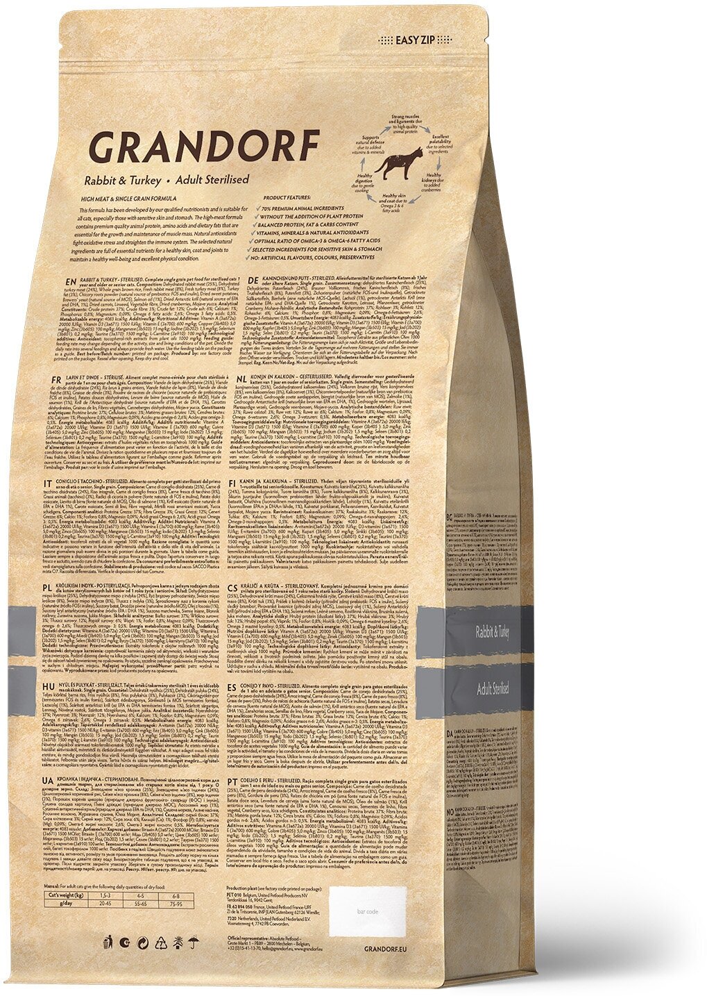 Корм для кошек GRANDORF для стерилизованных, кролик с рисом сух. 400г (размер: Для всех пород)