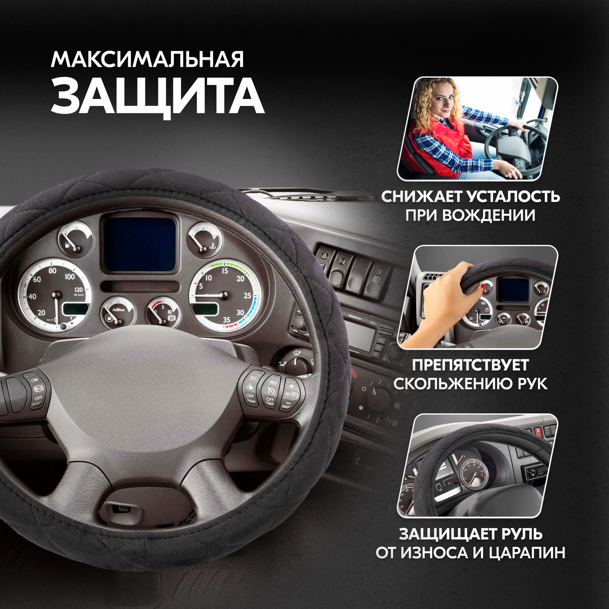 Оплетка на руль - сверхпопулярный автомобильный аксессуар. Сделана из высококачественного материала алькантара. Практичный черный цвет отлично вписывается в любой интерьер. Стильный дизайн выгодно подчеркнет хороший вкус автовладельца и его индивидуальность. Оплетка на руль Hit-1 размера «XL» подходит на газель, УАЗ, внедорожник. На руль оплетка устанавливается легко, не требует долгих манипуляций, достаточно минимума усилий и предварительного нагрева для более легкого надевания. Поэтому справится даже хрупкая девушка. Не нужно отдавать машину в автоателье на перетяжку руля. Внимание! Важно ознакомиться с последовательностью натягивания оплетки (см. слайд). Нагреть оплетку можно обычным феном, на солнце или горячим воздухом в машине.Тянется при установке, при этом отлично держит форму и плотно прилегает к рулю, повторяя его рельеф и изгибы. Вот почему чехол на руль автомобиля универсальный. Преимущества: износостойкая, без запаха, устойчива к царапинам и порезам.Чехол на руль с отменными рабочими характеристиками: скрывает имеющиеся потертости и царапины, уберегает от появления новых. Оплетка на руль не перегревается летом от солнечных лучей и не обжигает руки, а зимой не дубеет на морозе, не растрескивается, материал оплетки очень приятный на ощупь.За счет красивого внешнего вида чехол на руль автомобиля хорош как подарок девушке, как подарок мужчине в машину.Противоскользящий материал ПВХ с внутренней стороны гарантирует - оплетка не будет смещаться по ободу колеса, обеспечит крепкое сцепление с его поверхностью, что критично важно во время вращения руля.