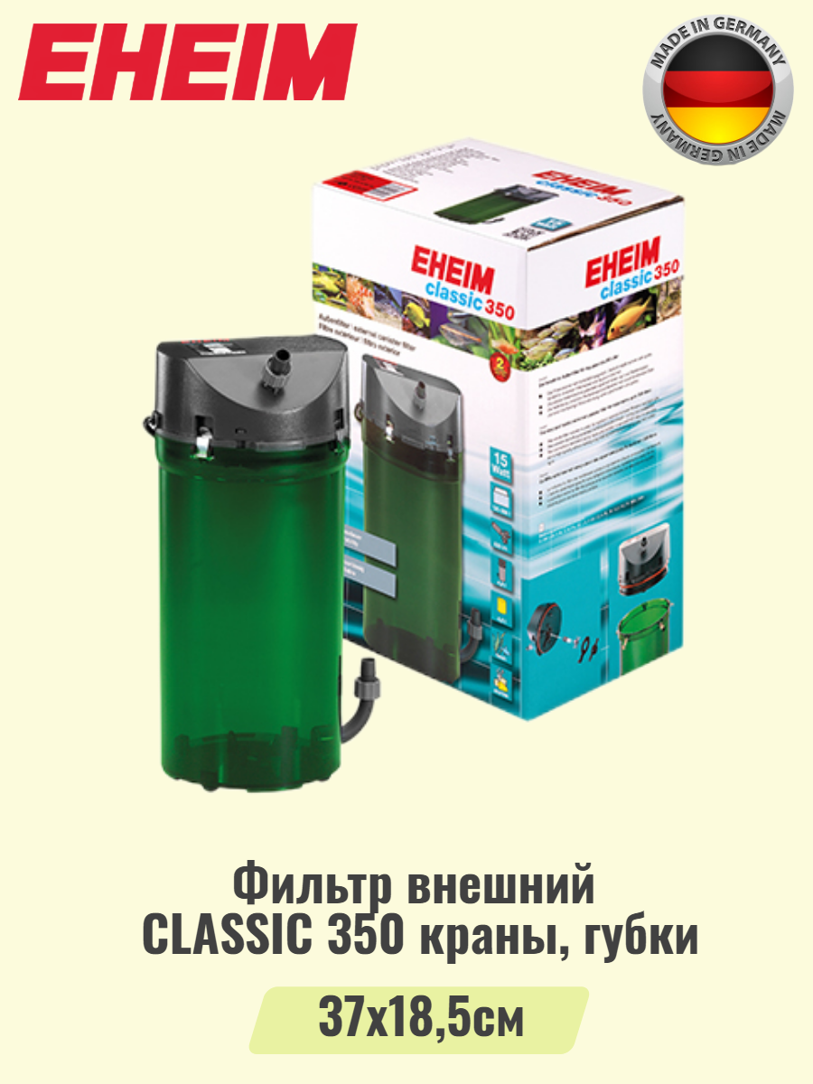 Внешний фильтр Eheim Classic 350 – очередная профессиональная разработка от опытной немецкой компании, предлагающая организовать качественную систему фильтрации для резервуаров с солёной и пресной водой. Предназначена для аквариумов объёмом до 350 литров. Имеет простую схему подключения, производительный насос для перекачивания воды. Может поднимать жидкость на высоту до 1,8 метров, что позволяет установить модель даже на удалении от самого аквариума. Покупка подойдёт, как для профессиональных аквариумистов, так и для начинающих пользователей.