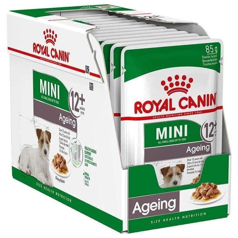 Продукт «ROYAL CANIN® Mini Ageing 12+ кусочки в соусе» для собак мелких размеров старше 12 лет (весом до 10 кг) разработан с учетом их особых потребностей в питательных веществах.