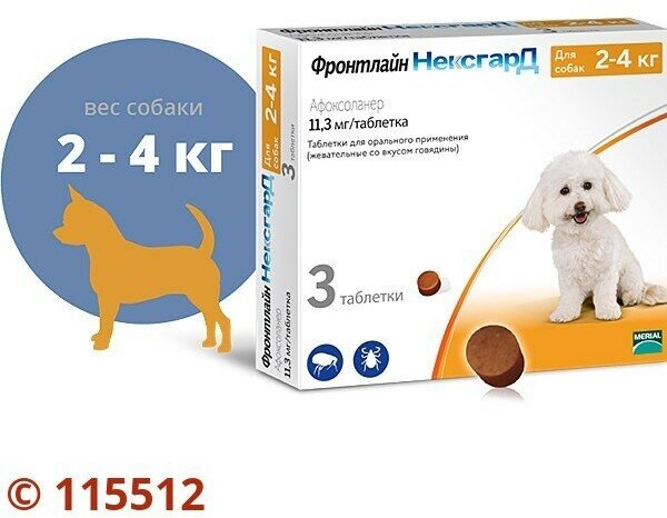 Препарат для собак MERIAL Фронтлайн НексгарД Спектра таблетки жевательные 2-4 килограмма 3х11,3мг 3таб (размер: 0.11)