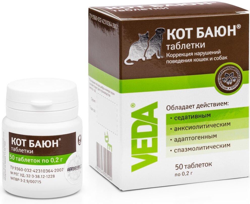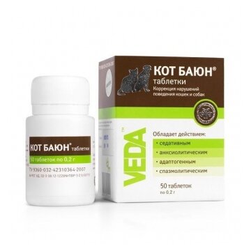 Препарат ВЕДА КОТ БАЮН для коррекции нарушений поведения кошек и собак 50таб (размер: 0.042)