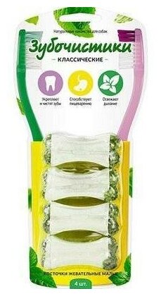«Зубочистики» классические — это прекрасная возможность совместить приятное с полезным. Каждое лакомство содержит кальций и хлорофилл, которые способствуют укреплению зубов и улучшению пищеварения. Натуральные ингредиенты и великолепный вкус гарантируют удовольствие вашему питомцу.